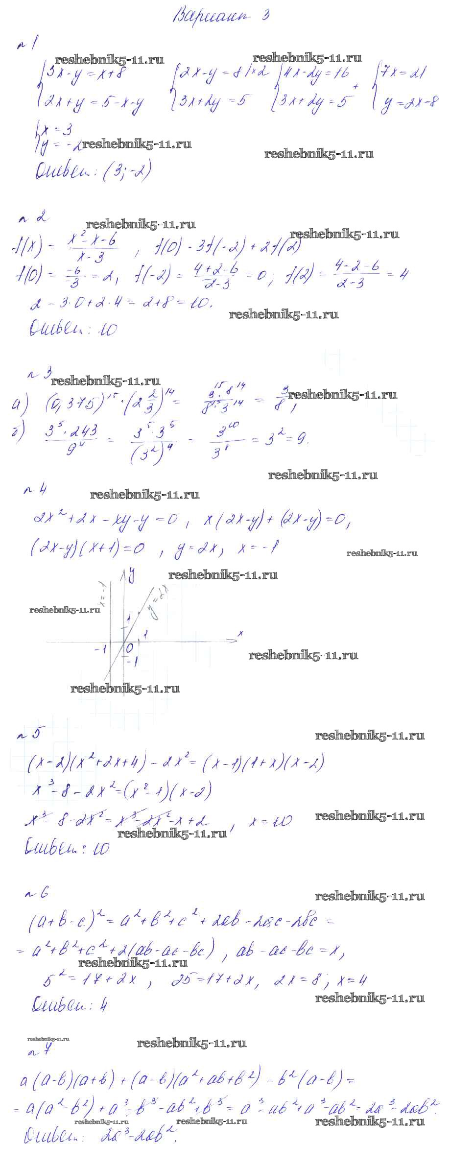 Готовая домашняя работа с ответами по Алгебре за 8 класс Феоктистов Дидактические материалы Мнемозина 2013 ФГОС - СР-1. Повторение материала 7-го класса вариант 3