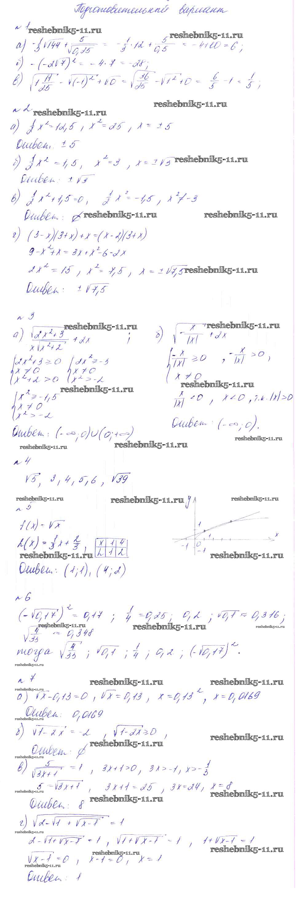 Готовая домашняя работа с ответами по Алгебре за 8 класс Феоктистов Дидактические материалы Мнемозина 2013 ФГОС - СР-10. Арифметические квадратный корень. Функция y = √x подготовительный вариант