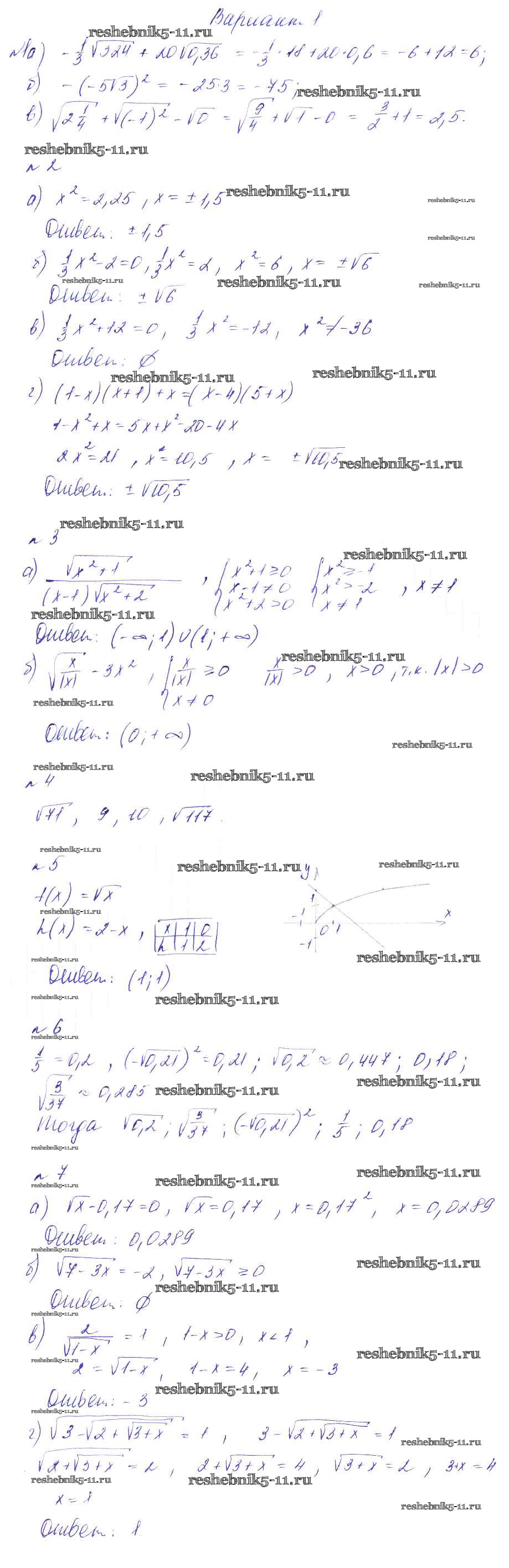 Готовая домашняя работа с ответами по Алгебре за 8 класс Феоктистов Дидактические материалы Мнемозина 2013 ФГОС - СР-10. Арифметические квадратный корень. Функция y = √x вариант 1