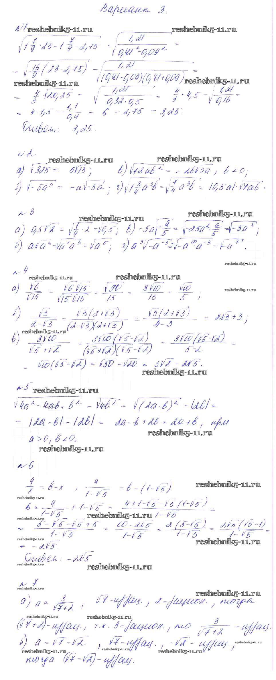 Готовая домашняя работа с ответами по Алгебре за 8 класс Феоктистов Дидактические материалы Мнемозина 2013 ФГОС - СР-11. Свойства арифметического квадратного корня вариант 3