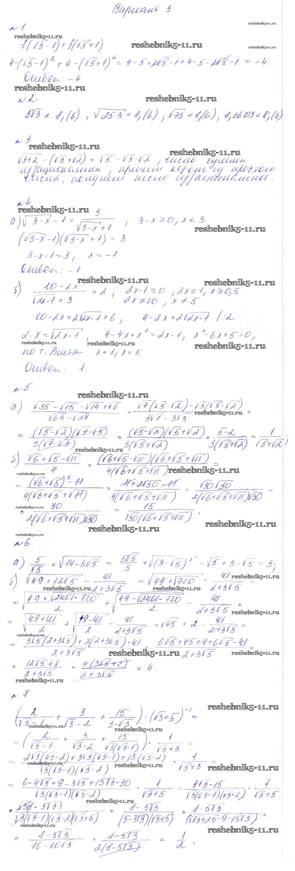 Готовая домашняя работа с ответами по Алгебре за 8 класс Феоктистов Дидактические материалы Мнемозина 2013 ФГОС - СР-12. Преобразование сложных радикалов вариант 3