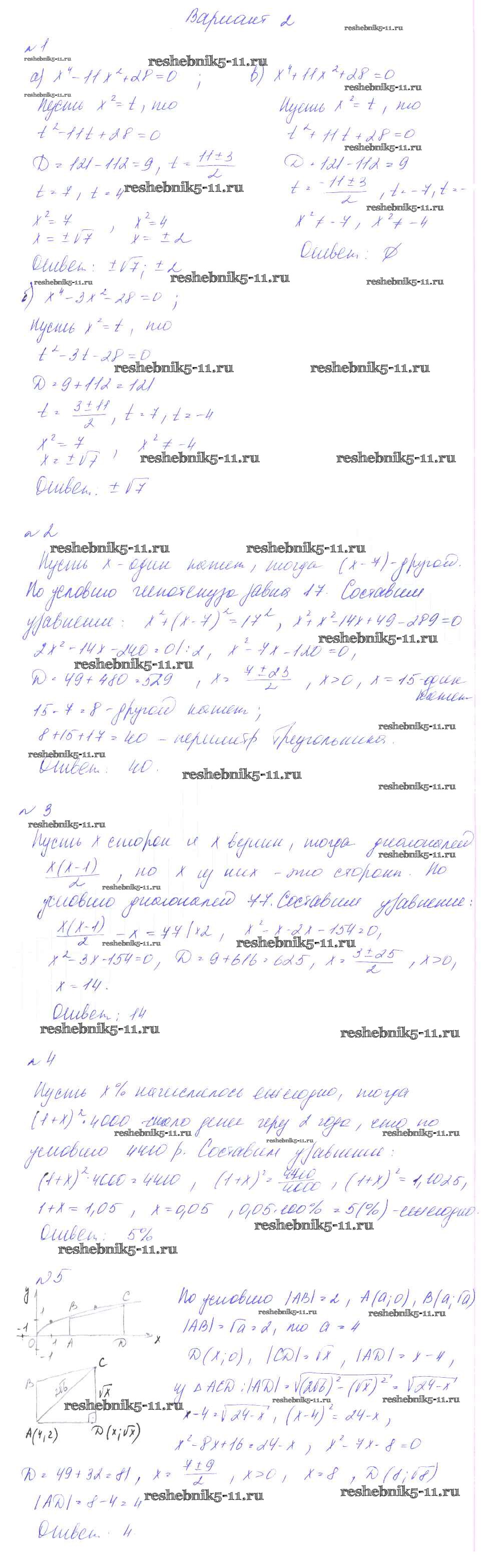 Готовая домашняя работа с ответами по Алгебре за 8 класс Феоктистов Дидактические материалы Мнемозина 2013 ФГОС - СР-14. Биквадратные уравнения. Решение задач с помощью квадратных уравнений вариант 2