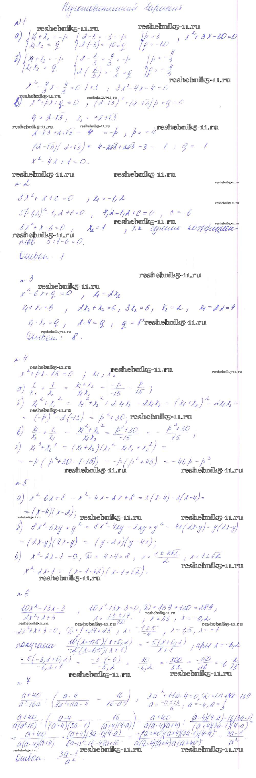 Готовая домашняя работа с ответами по Алгебре за 8 класс Феоктистов Дидактические материалы Мнемозина 2013 ФГОС - СР-15. Свойство корней квадратного уравнения, симметрические многочлены, разложение квадратного трехчлена на множ подготовительный вариант
