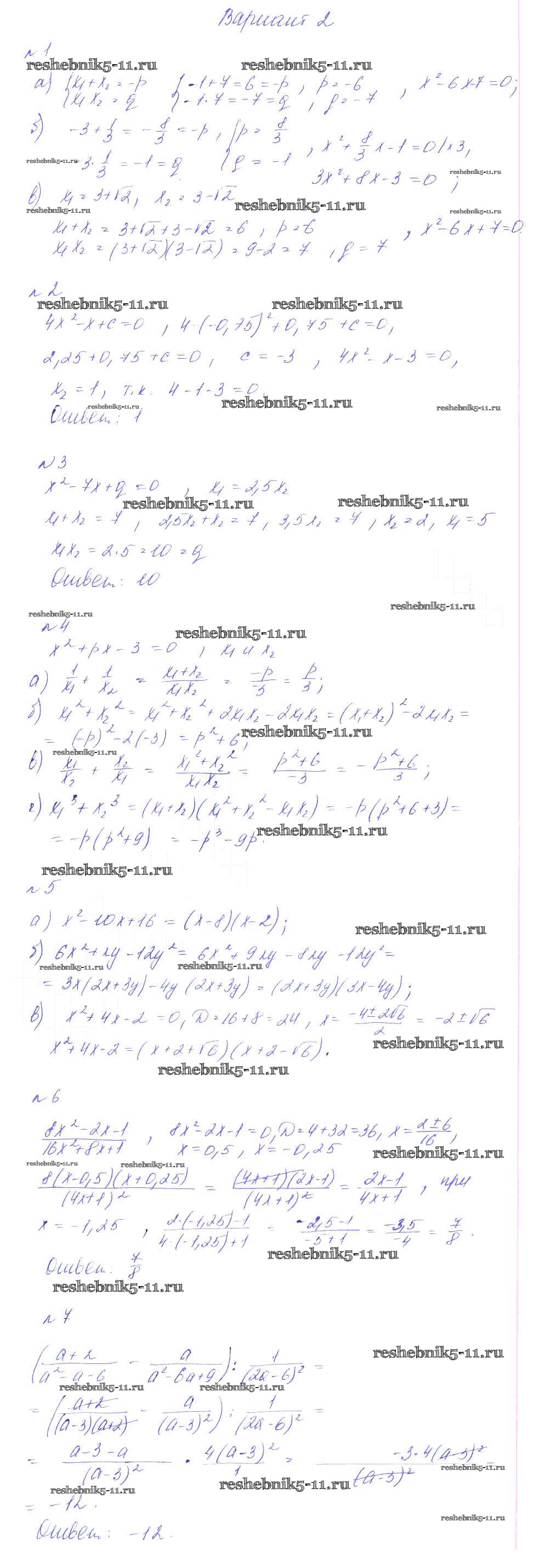 Готовая домашняя работа с ответами по Алгебре за 8 класс Феоктистов Дидактические материалы Мнемозина 2013 ФГОС - СР-15. Свойство корней квадратного уравнения, симметрические многочлены, разложение квадратного трехчлена на множ вариант 2