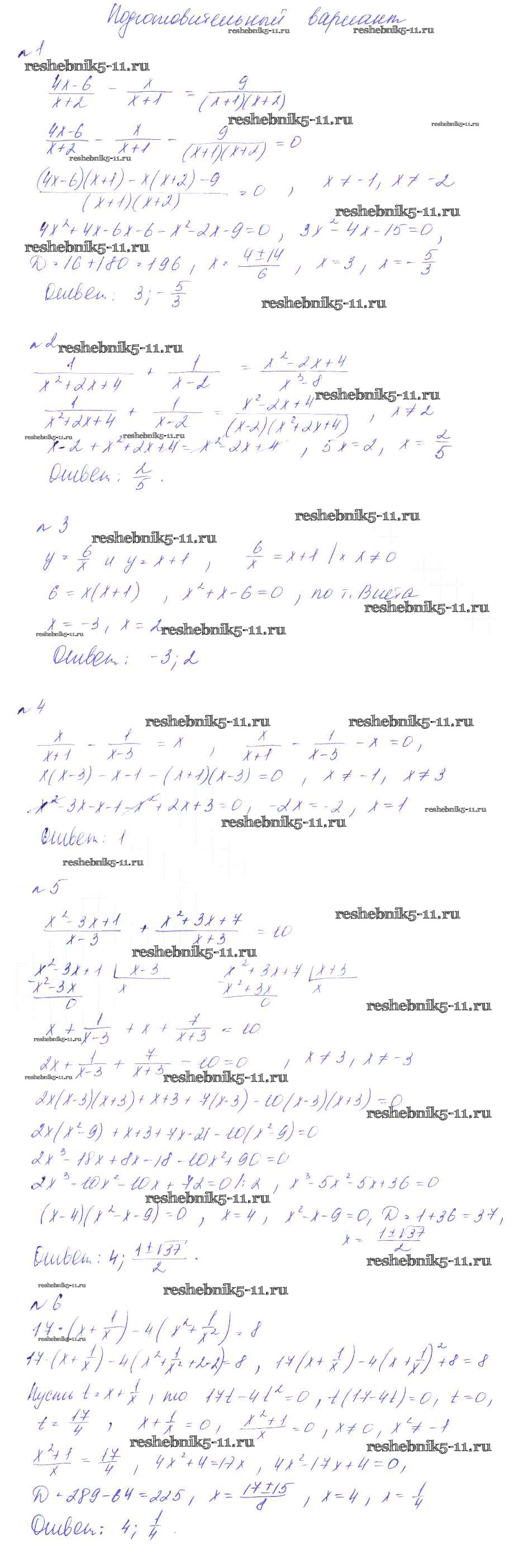 Готовая домашняя работа с ответами по Алгебре за 8 класс Феоктистов Дидактические материалы Мнемозина 2013 ФГОС - СР-16. Решение дробно-рациональных уравнений подготовительный вариант