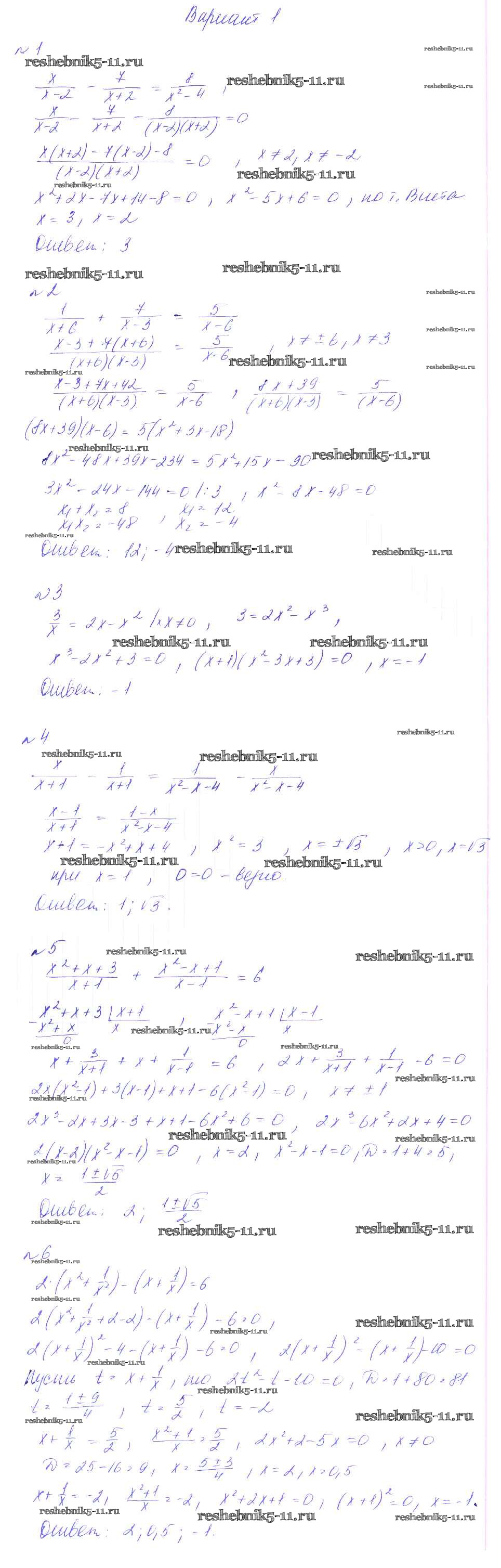 Готовая домашняя работа с ответами по Алгебре за 8 класс Феоктистов Дидактические материалы Мнемозина 2013 ФГОС - СР-16. Решение дробно-рациональных уравнений вариант 1