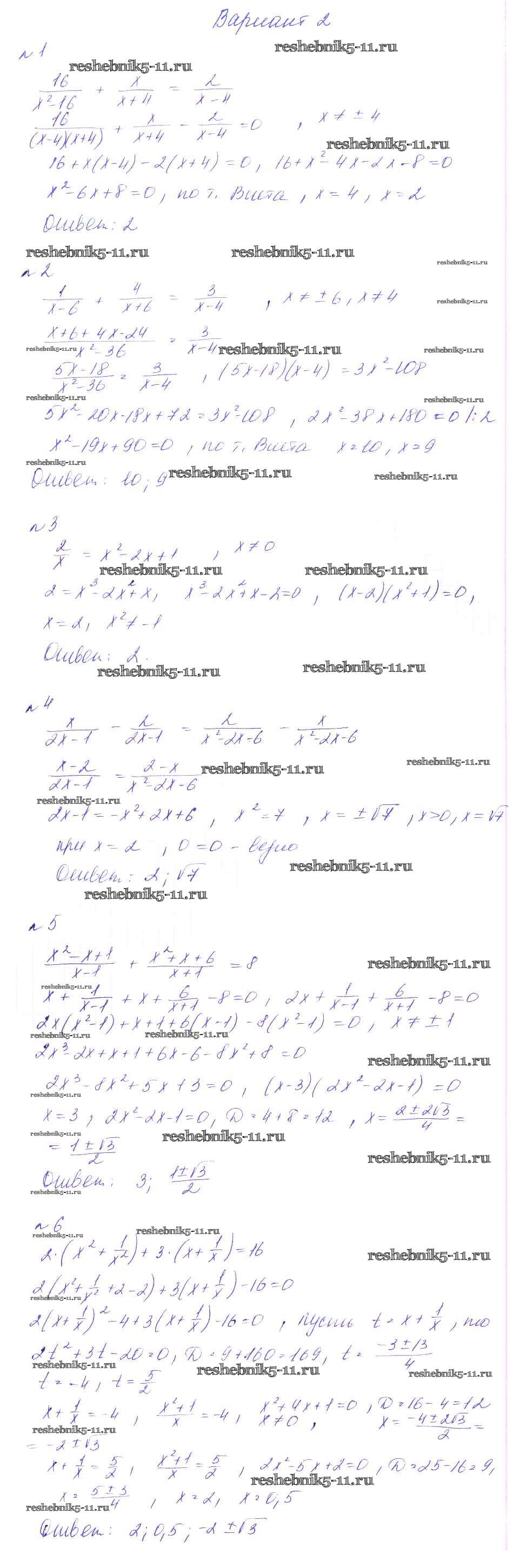 Готовая домашняя работа с ответами по Алгебре за 8 класс Феоктистов Дидактические материалы Мнемозина 2013 ФГОС - СР-16. Решение дробно-рациональных уравнений вариант 2