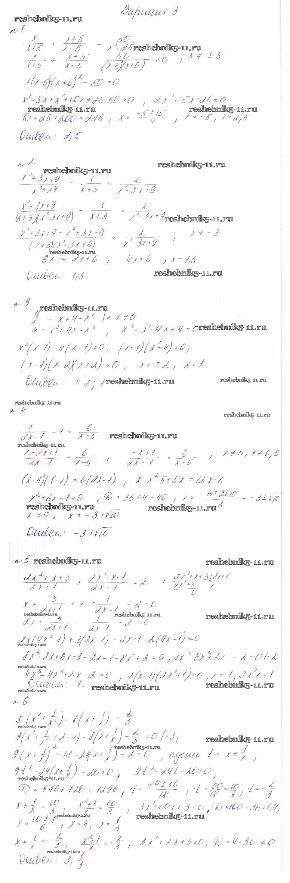 Готовая домашняя работа с ответами по Алгебре за 8 класс Феоктистов Дидактические материалы Мнемозина 2013 ФГОС - СР-16. Решение дробно-рациональных уравнений вариант 3