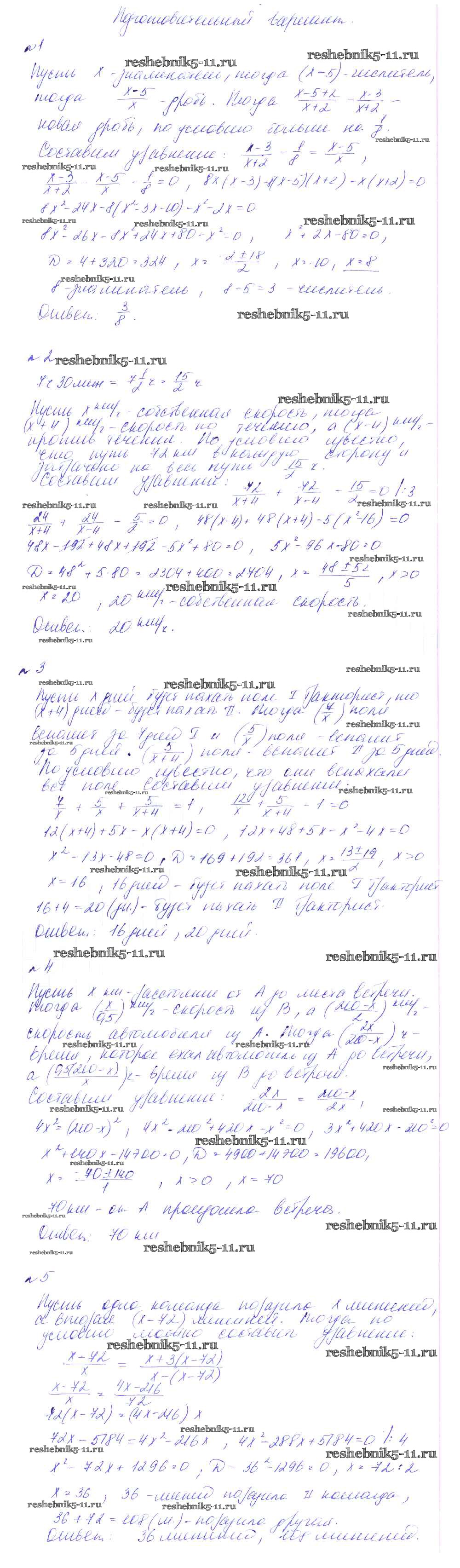 Готовая домашняя работа с ответами по Алгебре за 8 класс Феоктистов Дидактические материалы Мнемозина 2013 ФГОС - СР-17. Решение задач с помощью дробно-рациональных уравнений подготовительный вариант
