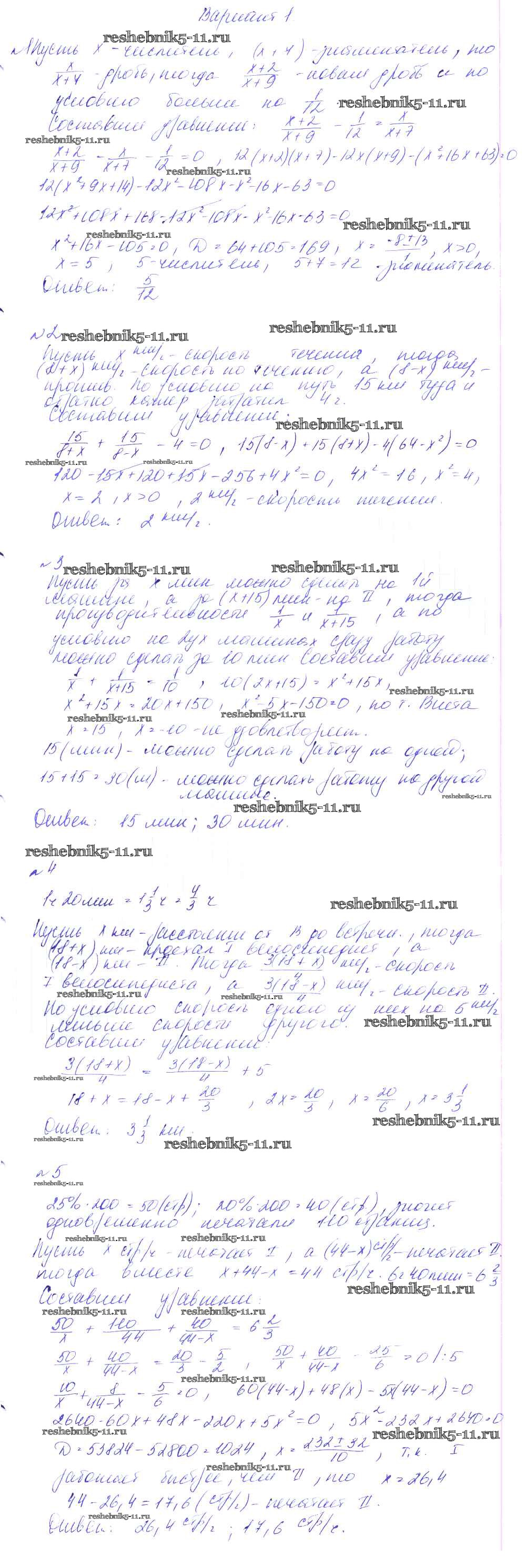 Готовая домашняя работа с ответами по Алгебре за 8 класс Феоктистов Дидактические материалы Мнемозина 2013 ФГОС - СР-17. Решение задач с помощью дробно-рациональных уравнений вариант 1
