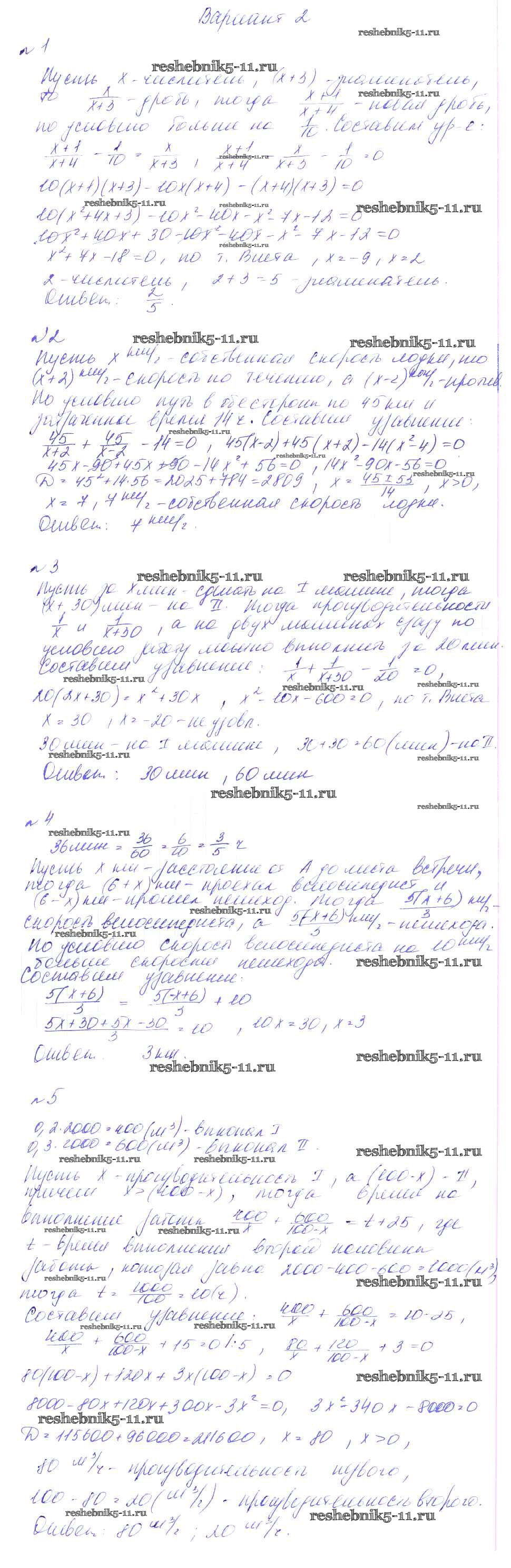 Готовая домашняя работа с ответами по Алгебре за 8 класс Феоктистов Дидактические материалы Мнемозина 2013 ФГОС - СР-17. Решение задач с помощью дробно-рациональных уравнений вариант 2