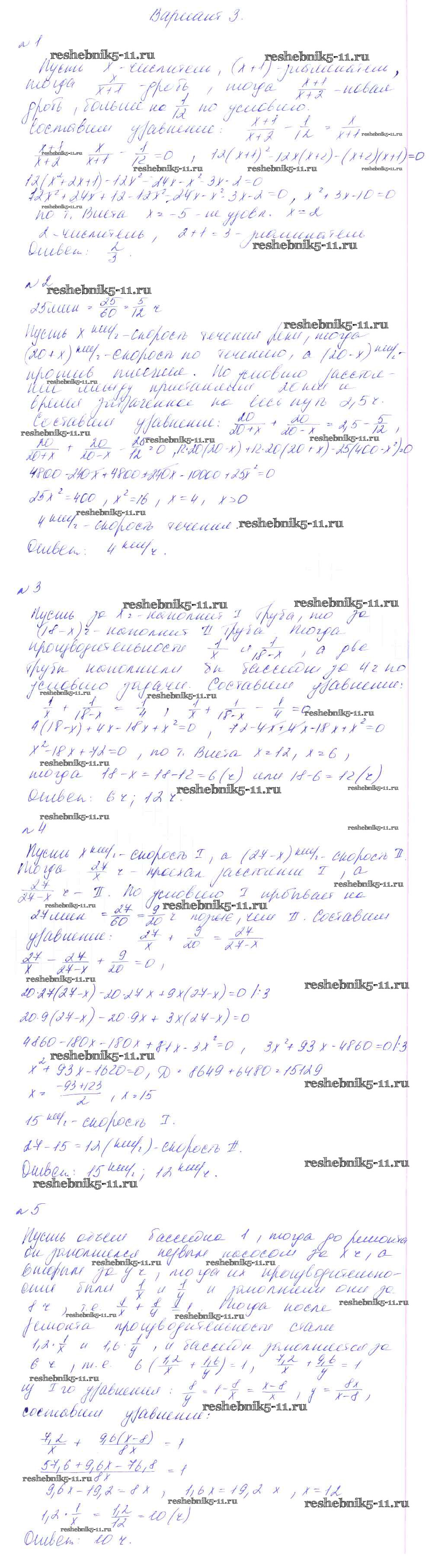 Готовая домашняя работа с ответами по Алгебре за 8 класс Феоктистов Дидактические материалы Мнемозина 2013 ФГОС - СР-17. Решение задач с помощью дробно-рациональных уравнений вариант 3
