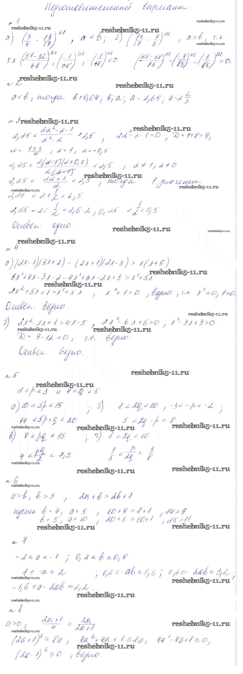 Готовая домашняя работа с ответами по Алгебре за 8 класс Феоктистов Дидактические материалы Мнемозина 2013 ФГОС - СР-18. Свойства числовых неравенств, оценка значений выражений, доказательство неравенств подготовительный вариант