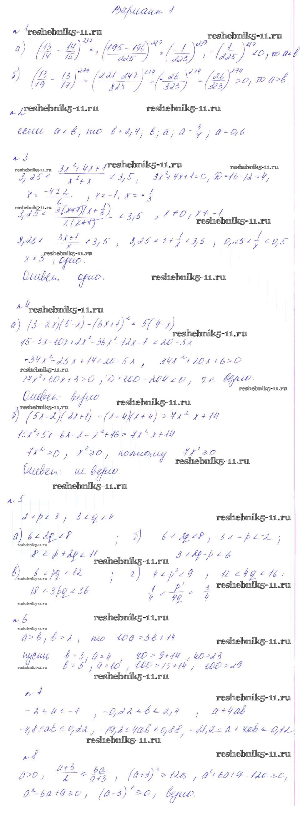 Готовая домашняя работа с ответами по Алгебре за 8 класс Феоктистов Дидактические материалы Мнемозина 2013 ФГОС - СР-18. Свойства числовых неравенств, оценка значений выражений, доказательство неравенств вариант 1