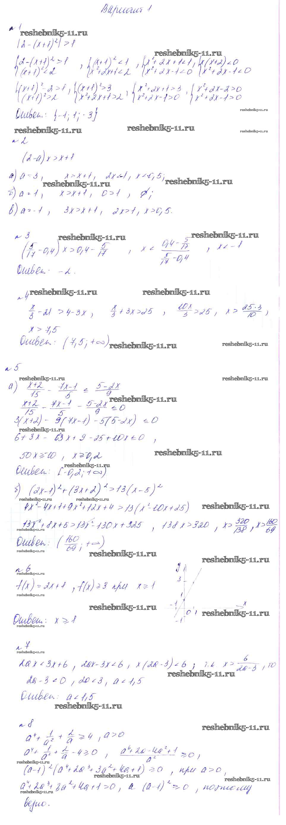Готовая домашняя работа с ответами по Алгебре за 8 класс Феоктистов Дидактические материалы Мнемозина 2013 ФГОС - СР-19. Решение неравенств с одной переменной вариант 1