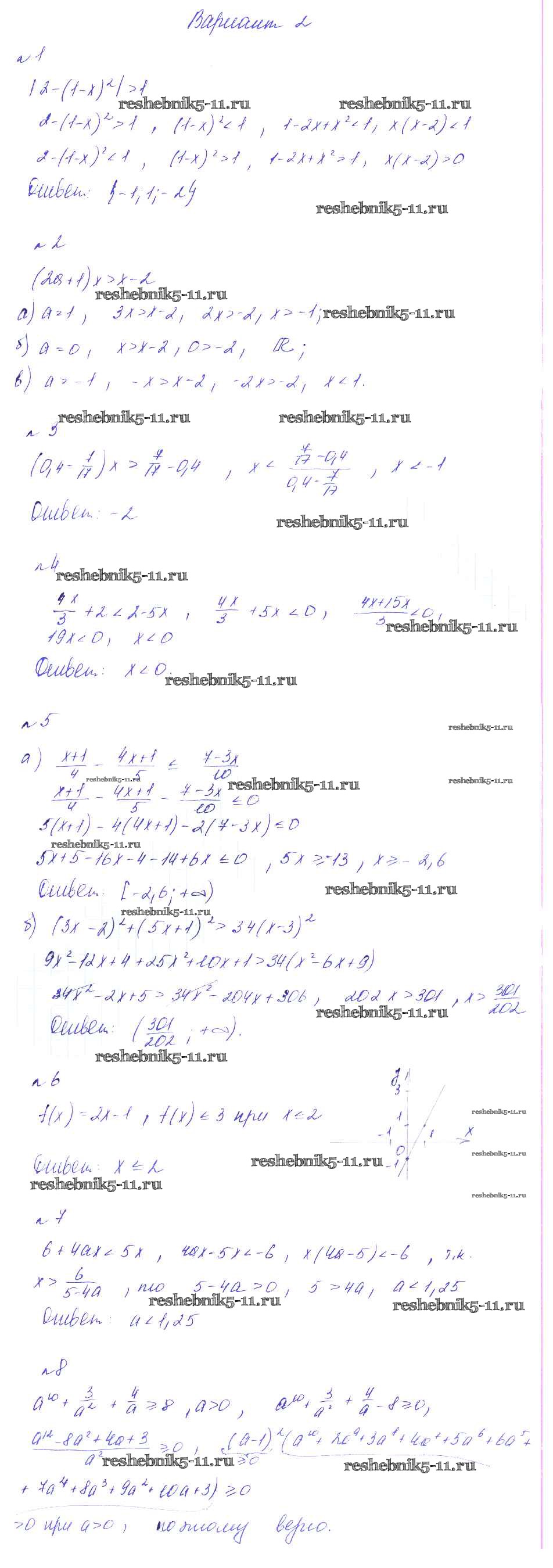Готовая домашняя работа с ответами по Алгебре за 8 класс Феоктистов Дидактические материалы Мнемозина 2013 ФГОС - СР-19. Решение неравенств с одной переменной вариант 2
