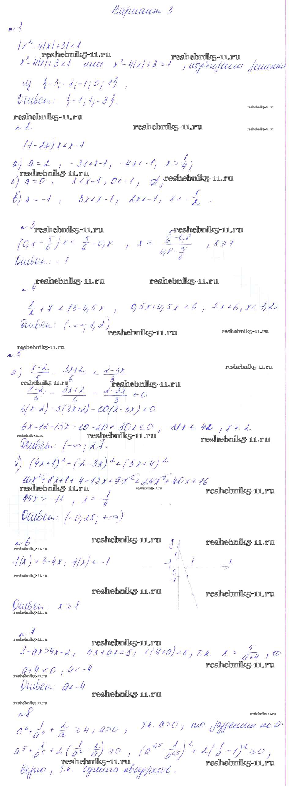 Готовая домашняя работа с ответами по Алгебре за 8 класс Феоктистов Дидактические материалы Мнемозина 2013 ФГОС - СР-19. Решение неравенств с одной переменной вариант 3