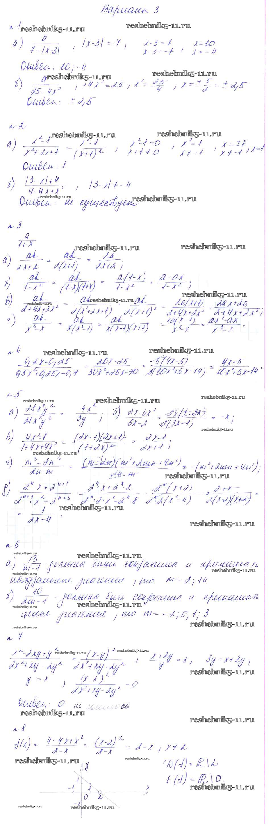 Готовая домашняя работа с ответами по Алгебре за 8 класс Феоктистов Дидактические материалы Мнемозина 2013 ФГОС - СР-2. Дроби и их свойства вариант 3