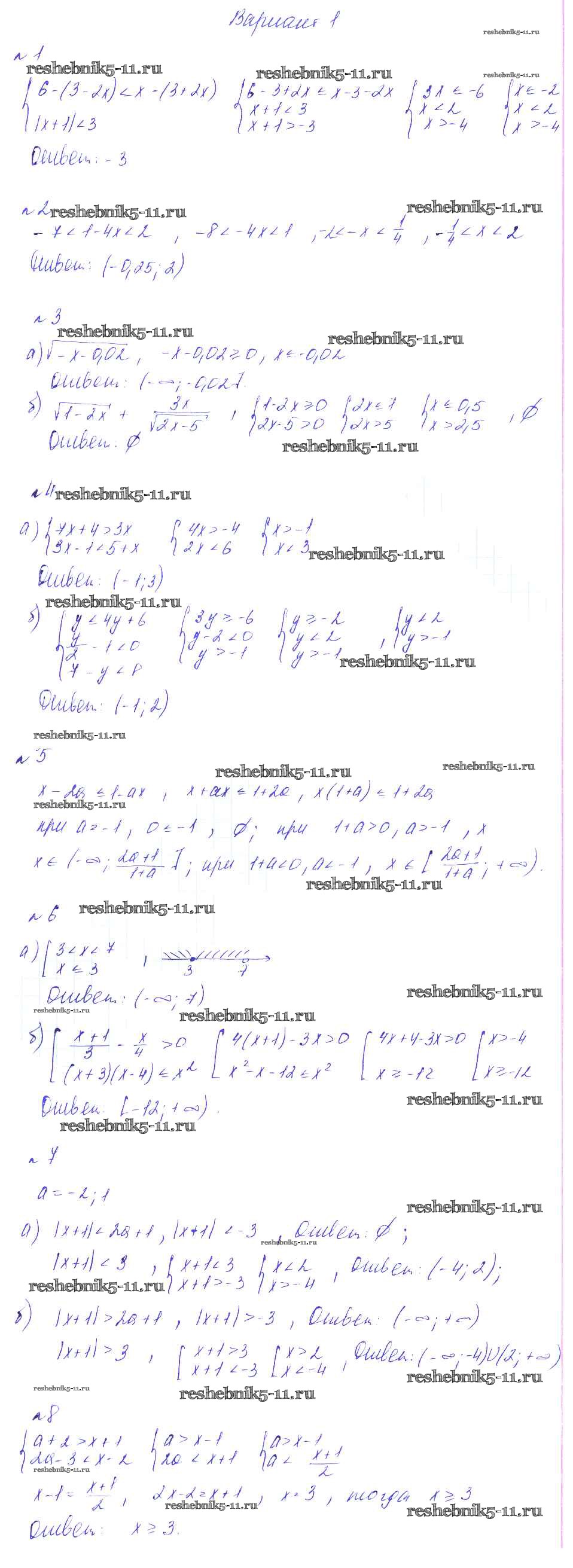 Готовая домашняя работа с ответами по Алгебре за 8 класс Феоктистов Дидактические материалы Мнемозина 2013 ФГОС - СР-20. Неравенства, содержащие модуль, системы и совокупности неравенств вариант 1