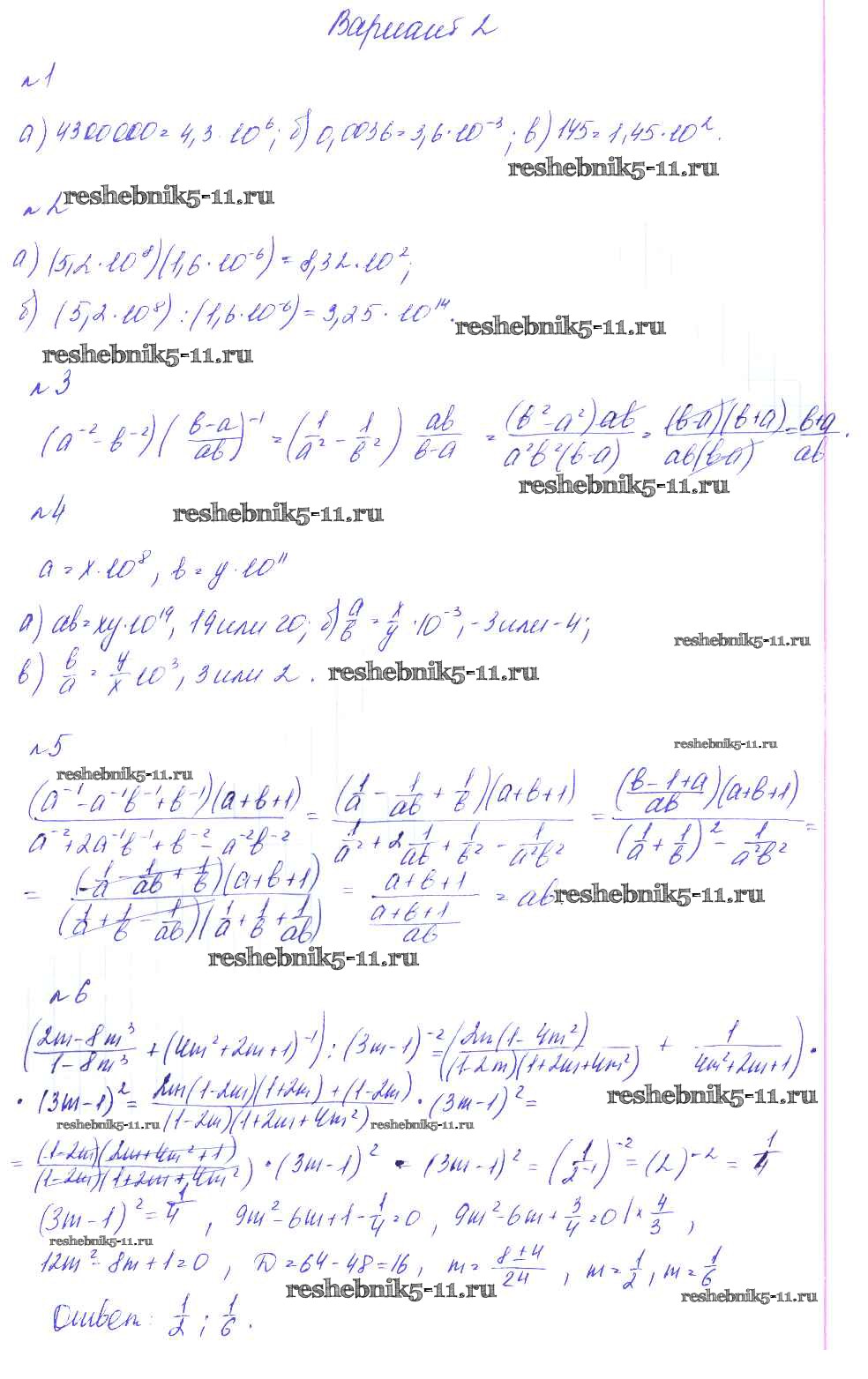 Готовая домашняя работа с ответами по Алгебре за 8 класс Феоктистов Дидактические материалы Мнемозина 2013 ФГОС - СР-22. Преобразование выражений, содержащих степени с целыми показателями. Стандартный вид числа вариант 2