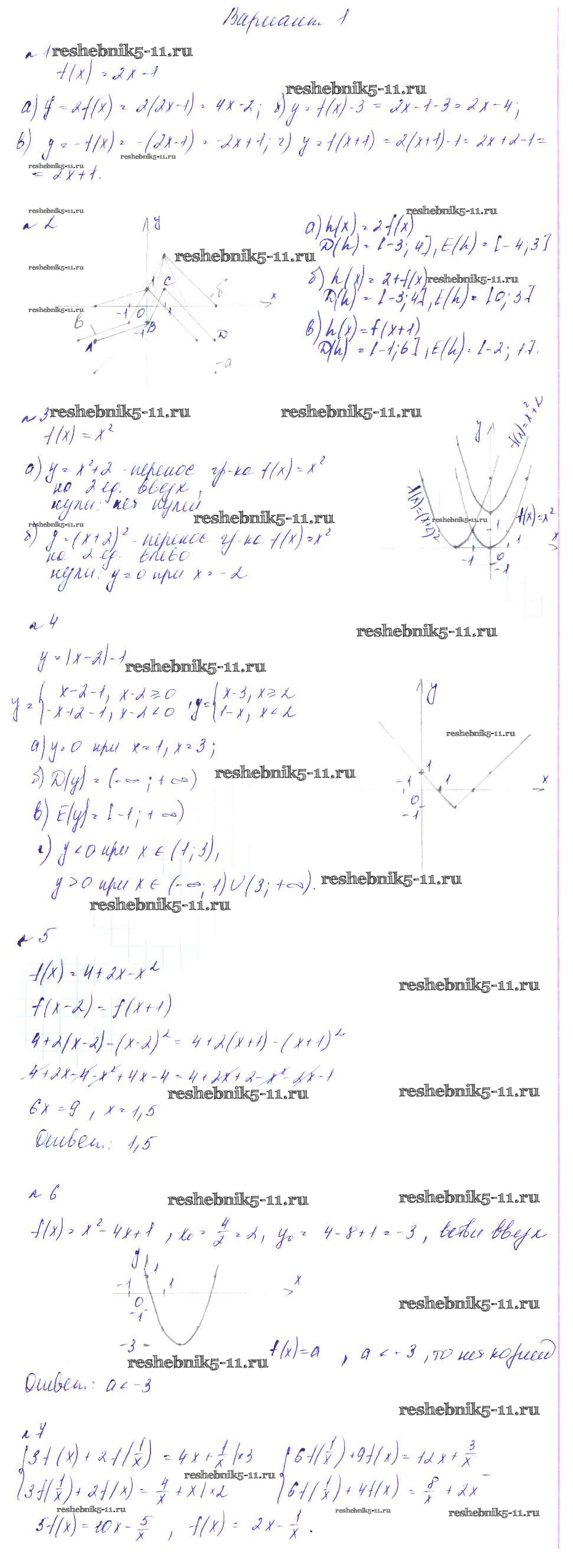 Готовая домашняя работа с ответами по Алгебре за 8 класс Феоктистов Дидактические материалы Мнемозина 2013 ФГОС - СР-23. Преобразование графиков функций вариант 1