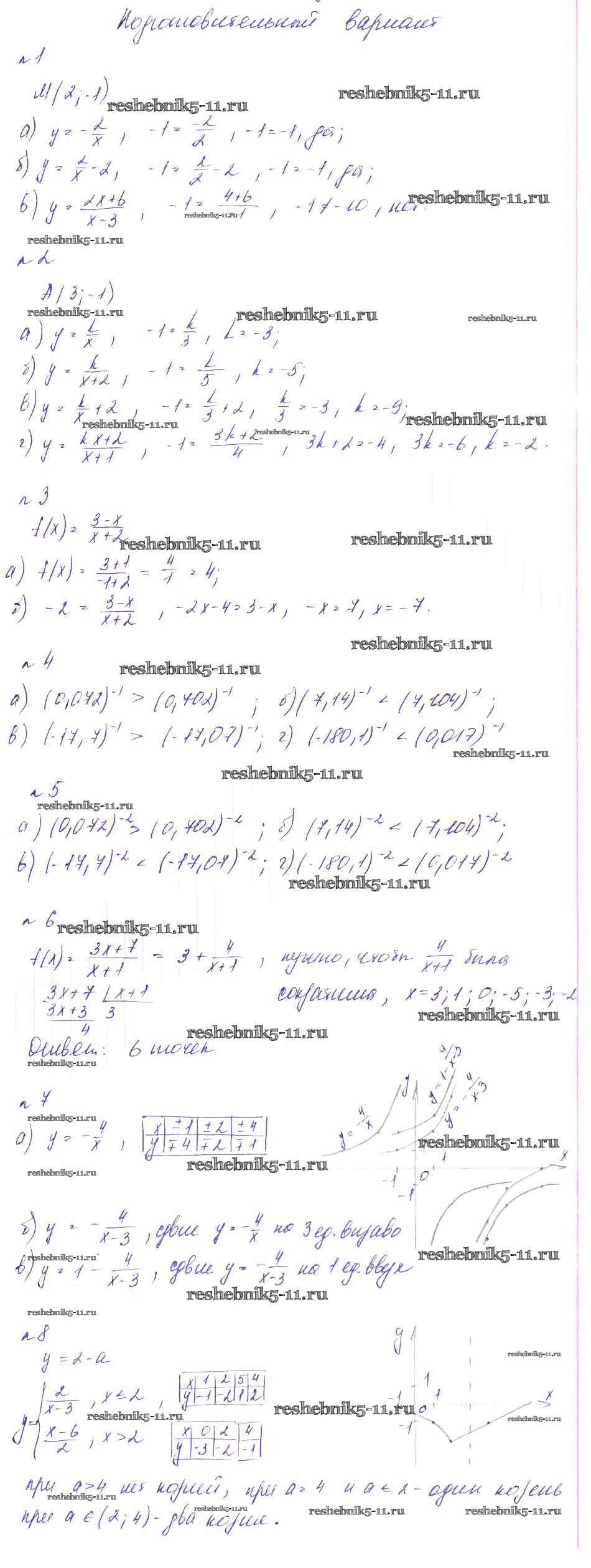 Готовая домашняя работа с ответами по Алгебре за 8 класс Феоктистов Дидактические материалы Мнемозина 2013 ФГОС - СР-24. Функции y = x в минус первой и минус второй степени подготовительный вариант