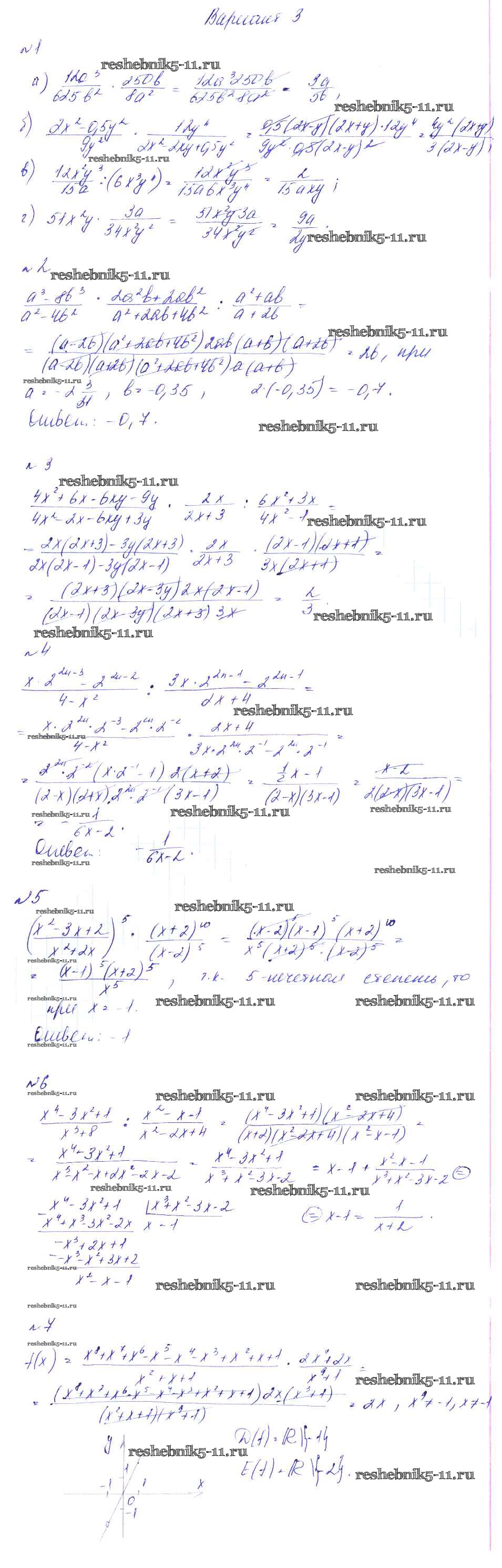 Готовая домашняя работа с ответами по Алгебре за 8 класс Феоктистов Дидактические материалы Мнемозина 2013 ФГОС - СР-4. Умножение, возведение в степень и деление дробей вариант 3