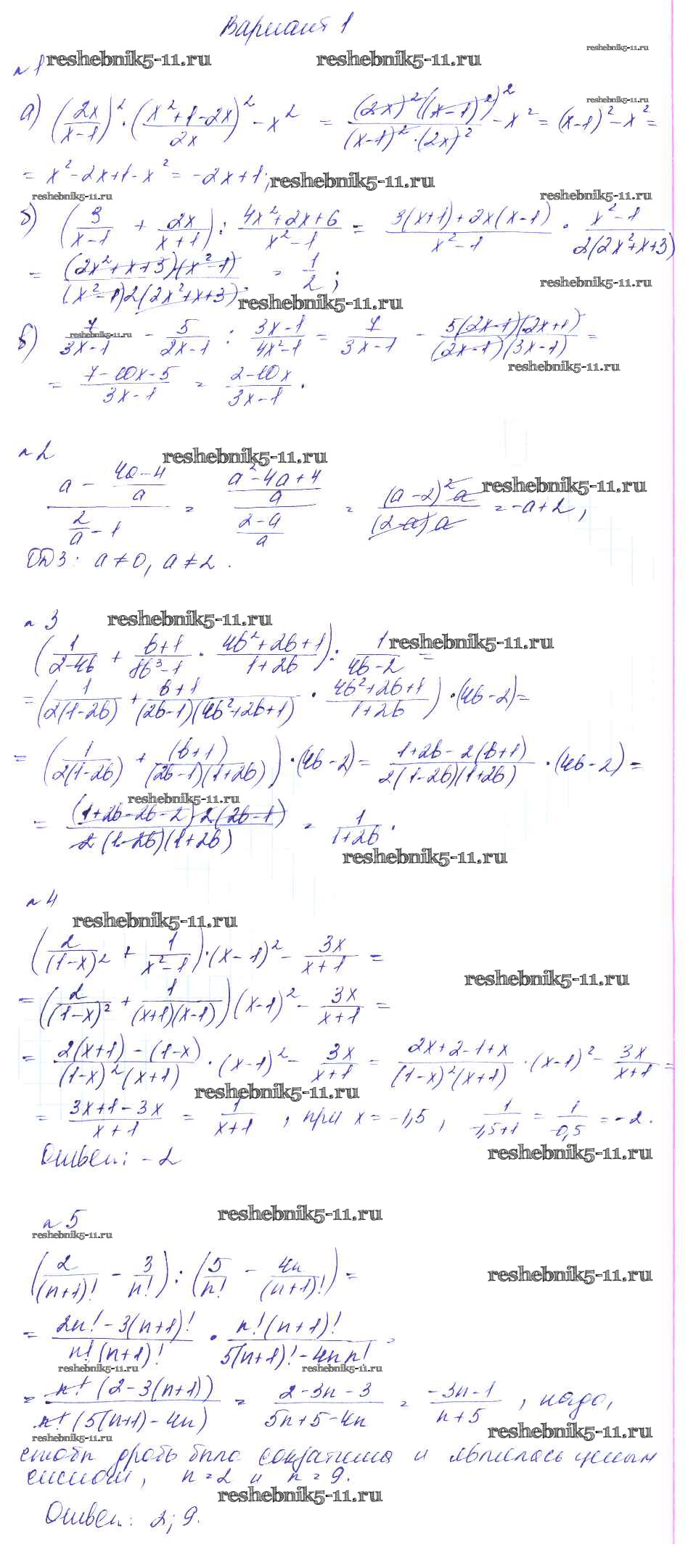 Готовая домашняя работа с ответами по Алгебре за 8 класс Феоктистов Дидактические материалы Мнемозина 2013 ФГОС - СР-5. Преобразование рациональных выражений вариант 1