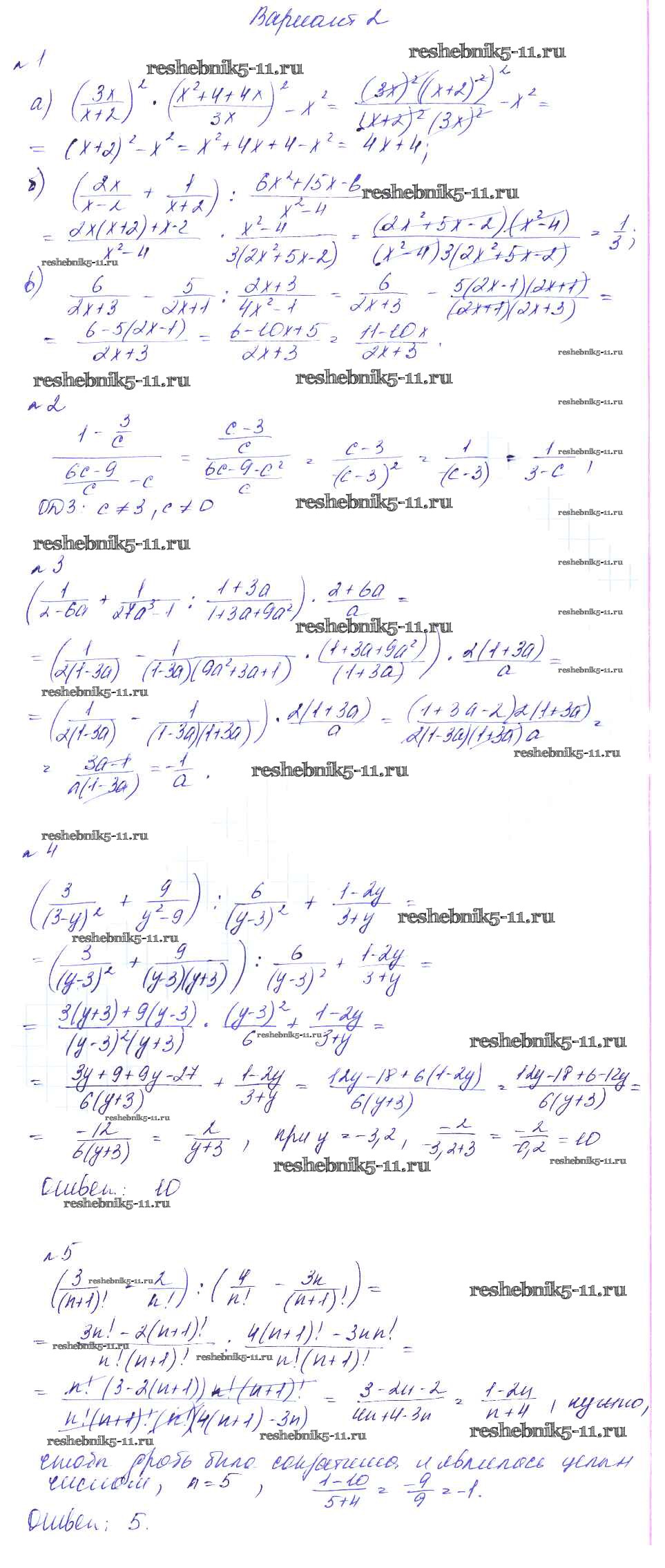 Готовая домашняя работа с ответами по Алгебре за 8 класс Феоктистов Дидактические материалы Мнемозина 2013 ФГОС - СР-5. Преобразование рациональных выражений вариант 2