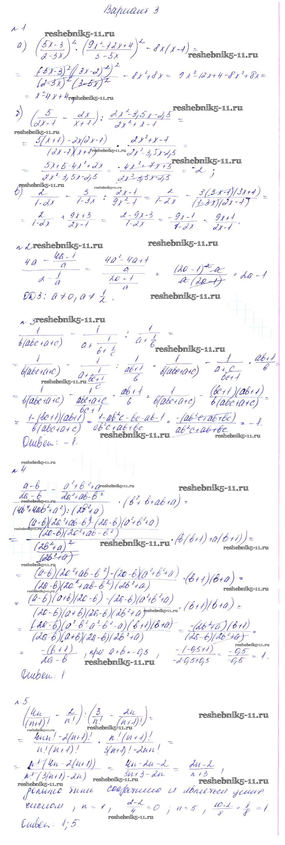 Готовая домашняя работа с ответами по Алгебре за 8 класс Феоктистов Дидактические материалы Мнемозина 2013 ФГОС - СР-5. Преобразование рациональных выражений вариант 3