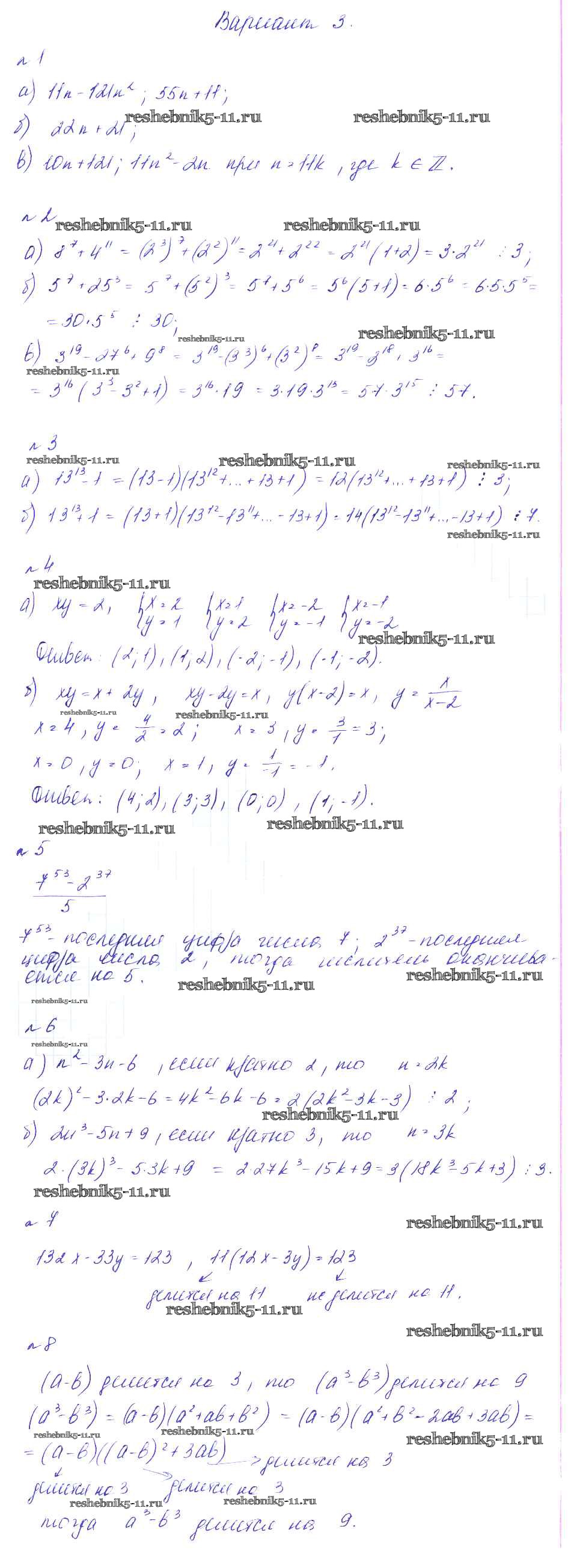 Готовая домашняя работа с ответами по Алгебре за 8 класс Феоктистов Дидактические материалы Мнемозина 2013 ФГОС - СР-7. Свойства делимости, делимость суммы и произведения вариант 3