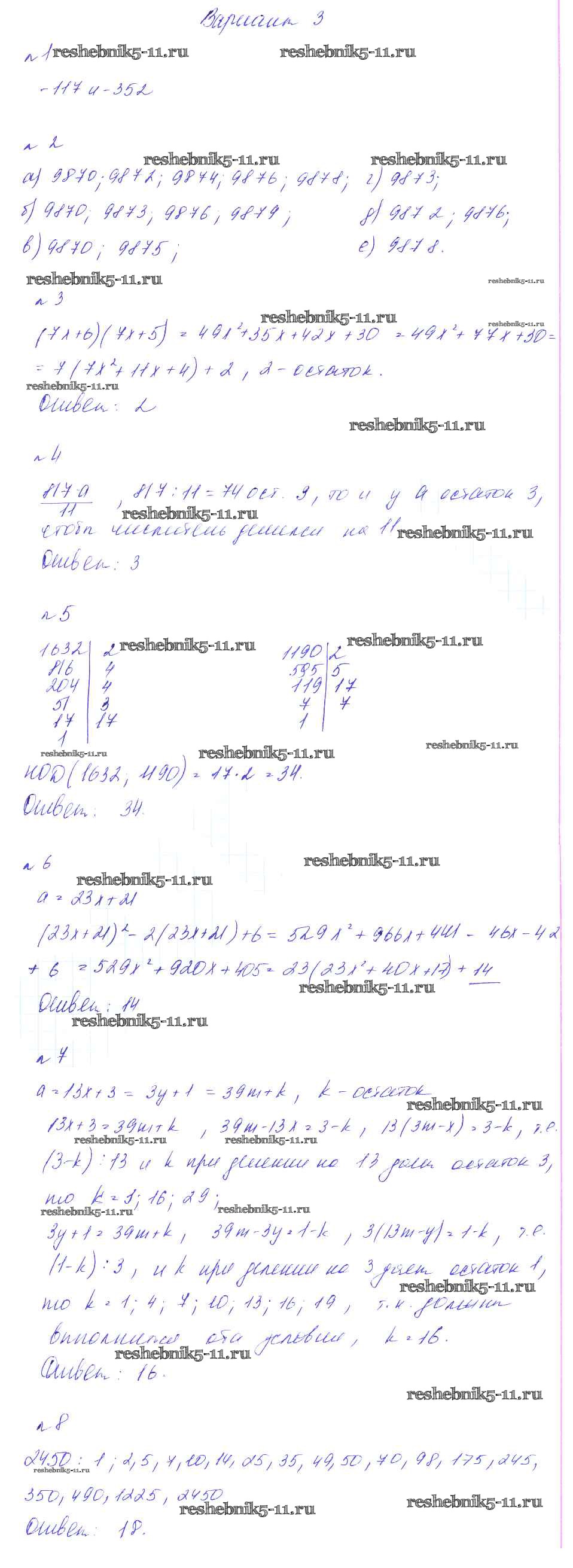 Готовая домашняя работа с ответами по Алгебре за 8 класс Феоктистов Дидактические материалы Мнемозина 2013 ФГОС - СР-8. Деление с остатком, признаки делимости, простые и составные числа вариант 3