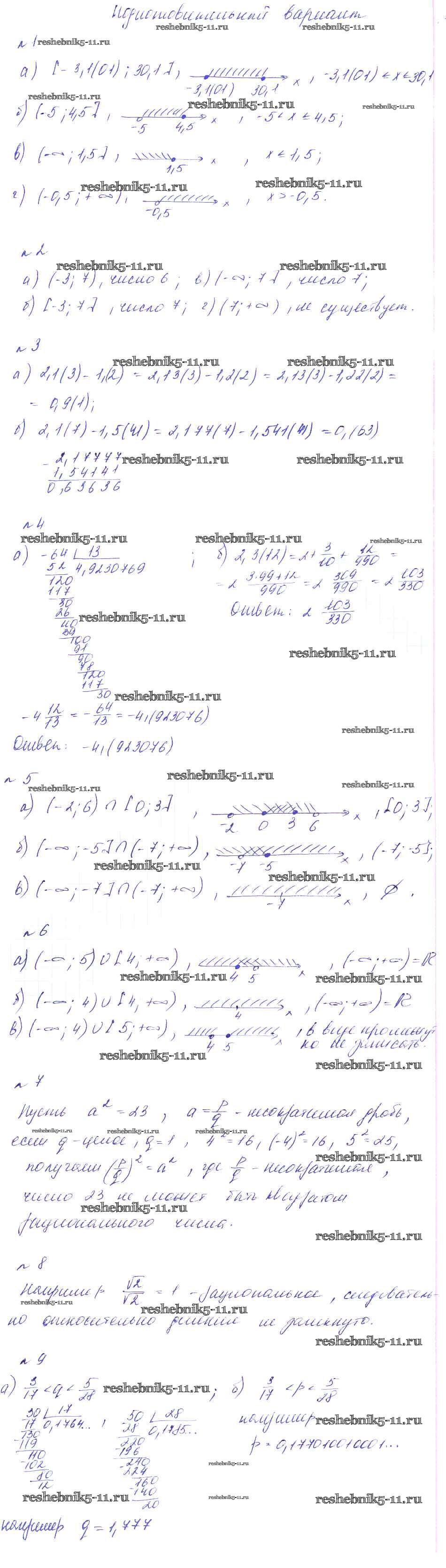 Готовая домашняя работа с ответами по Алгебре за 8 класс Феоктистов Дидактические материалы Мнемозина 2013 ФГОС - СР-9. Рациональные числа, действительные числа, числовые промежутки подготовительный вариант