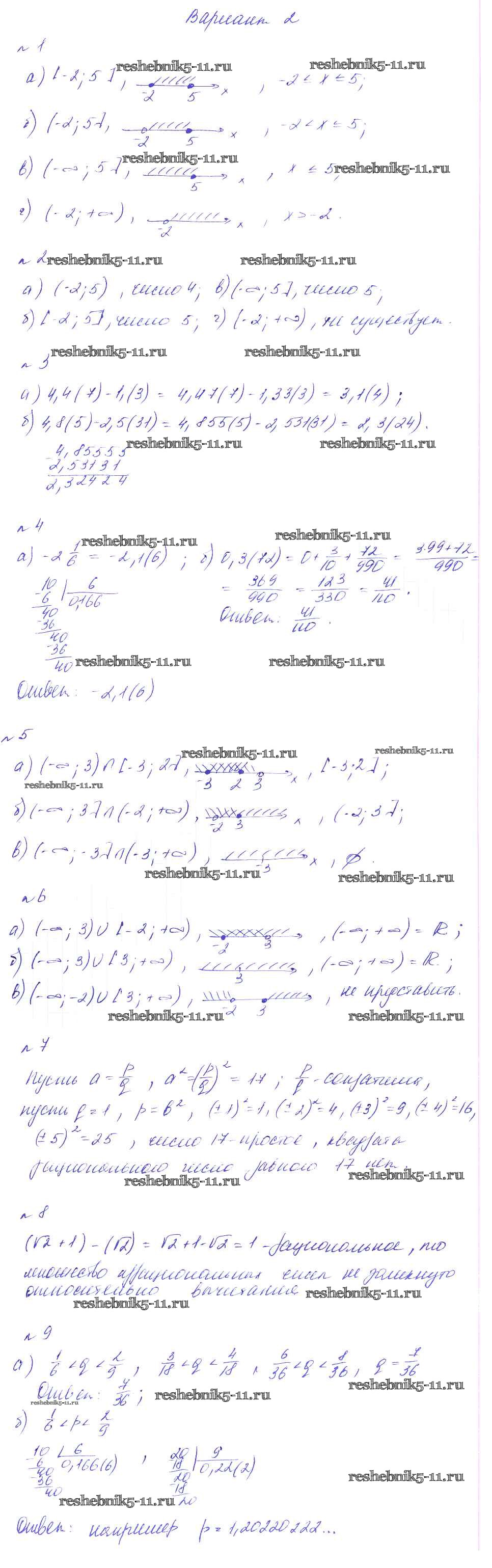 Готовая домашняя работа с ответами по Алгебре за 8 класс Феоктистов Дидактические материалы Мнемозина 2013 ФГОС - СР-9. Рациональные числа, действительные числа, числовые промежутки вариант 2