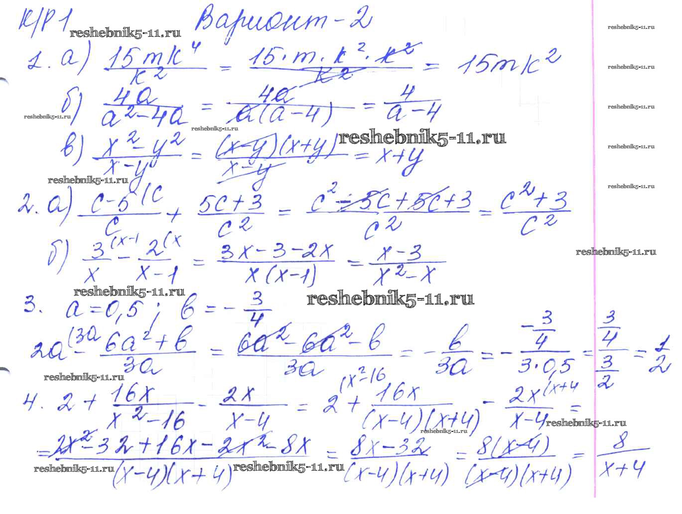 Готовая домашняя работа с ответами по Алгебре за 8 класс Дудницын, Кронгауз Контрольные работы УМК Экзамен 2010 ФГОС - КР-1. Сумма и разность дробей. Варианты 2