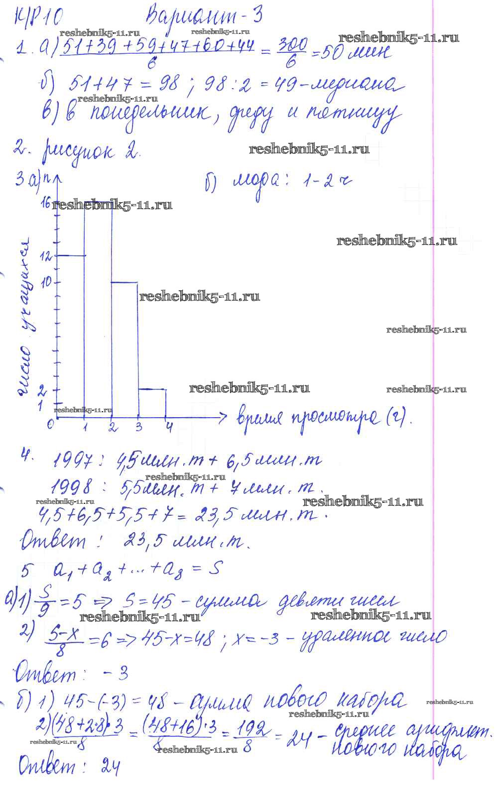 Готовая домашняя работа с ответами по Алгебре за 8 класс Дудницын, Кронгауз Контрольные работы УМК Экзамен 2010 ФГОС - КР-10. Элементы статистики. Варианты 3