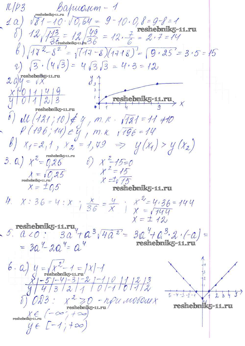 Готовая домашняя работа с ответами по Алгебре за 8 класс Дудницын, Кронгауз Контрольные работы УМК Экзамен 2010 ФГОС - КР-3. Арифметический квадратный корень. Варианты 1