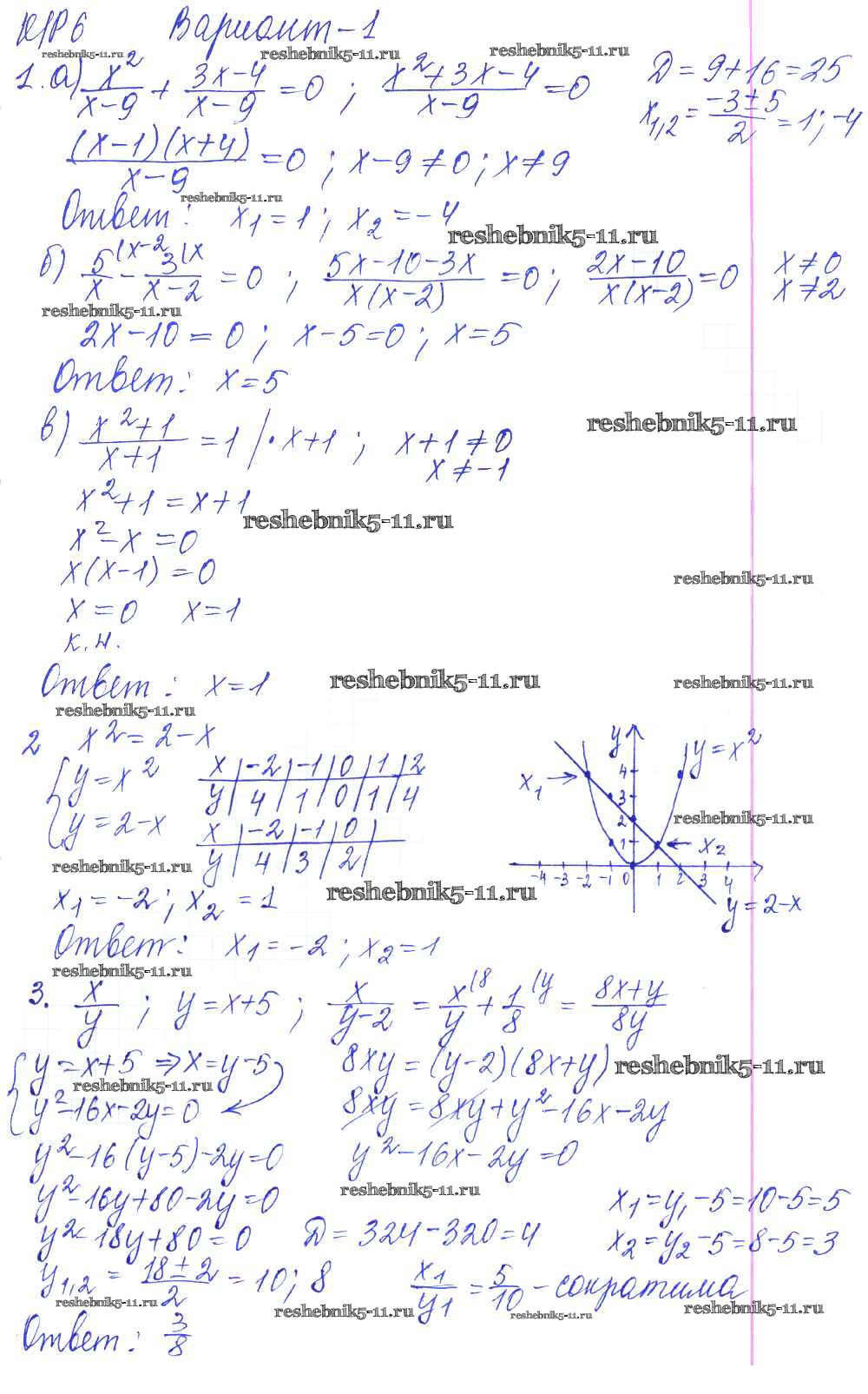 Готовая домашняя работа с ответами по Алгебре за 8 класс Дудницын, Кронгауз Контрольные работы УМК Экзамен 2010 ФГОС - КР-6. Дробные рациональные уравнения. Варианты 1