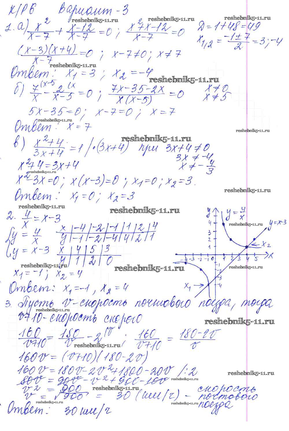Готовая домашняя работа с ответами по Алгебре за 8 класс Дудницын, Кронгауз Контрольные работы УМК Экзамен 2010 ФГОС - КР-6. Дробные рациональные уравнения. Варианты 3