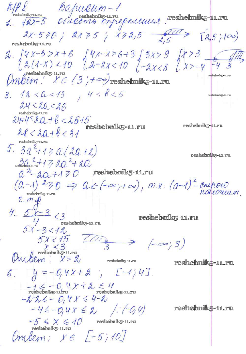 Готовая домашняя работа с ответами по Алгебре за 8 класс Дудницын, Кронгауз Контрольные работы УМК Экзамен 2010 ФГОС - КР-8. Системы неравенств с одной переменной. Варианты 1