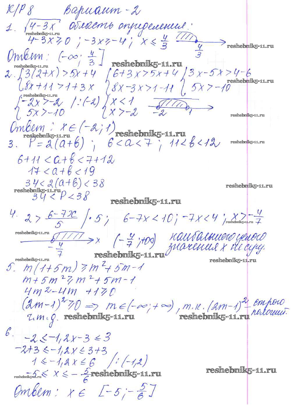Готовая домашняя работа с ответами по Алгебре за 8 класс Дудницын, Кронгауз Контрольные работы УМК Экзамен 2010 ФГОС - КР-8. Системы неравенств с одной переменной. Варианты 2