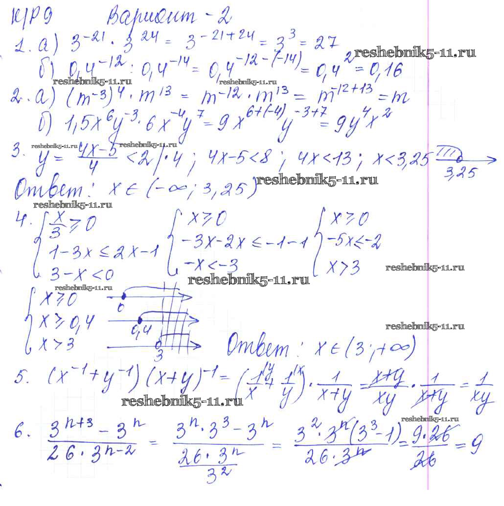 Готовая домашняя работа с ответами по Алгебре за 8 класс Дудницын, Кронгауз Контрольные работы УМК Экзамен 2010 ФГОС - КР-9. Степень с целым показателем. Варианты 2