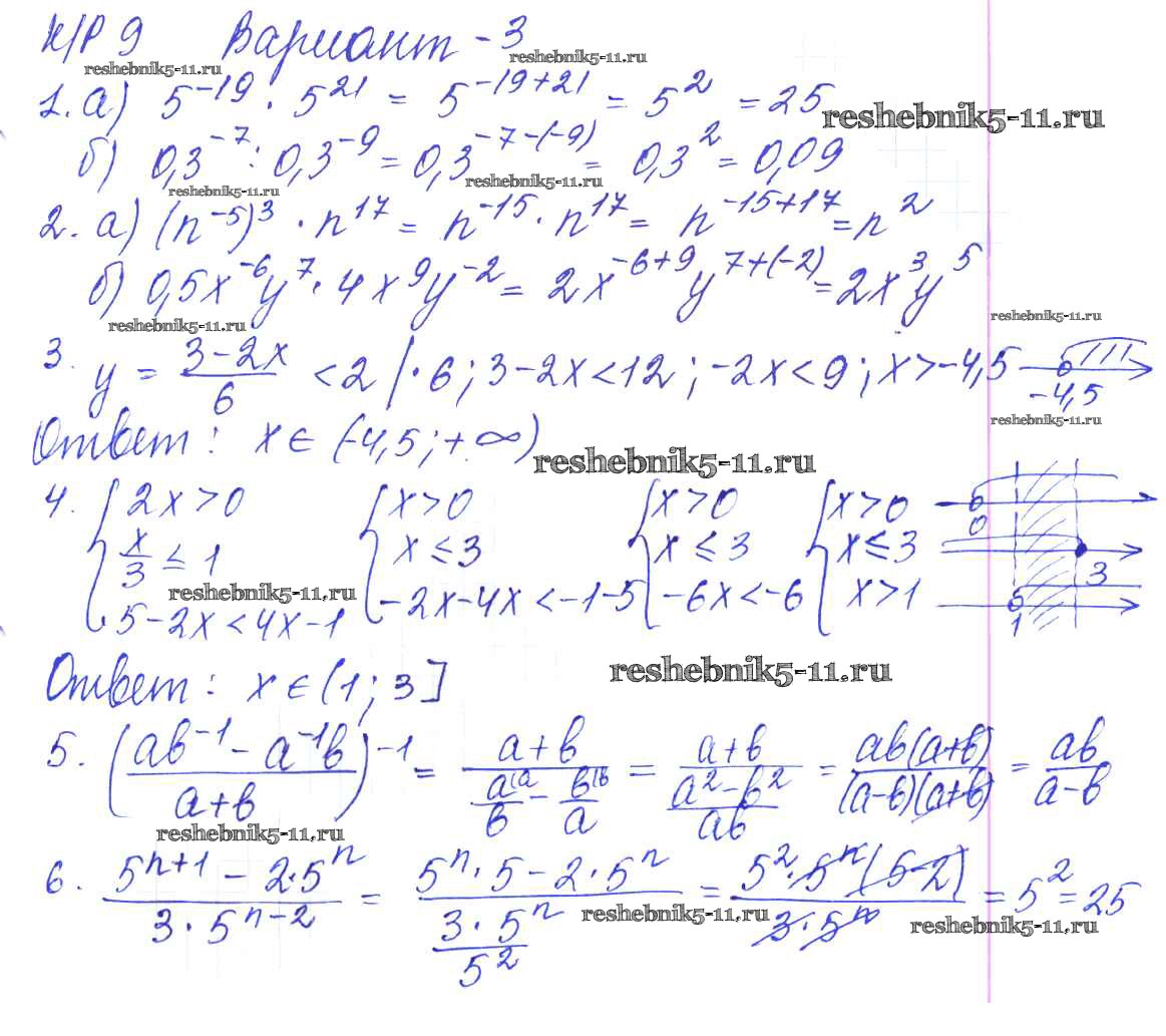 Готовая домашняя работа с ответами по Алгебре за 8 класс Дудницын, Кронгауз Контрольные работы УМК Экзамен 2010 ФГОС - КР-9. Степень с целым показателем. Варианты 3