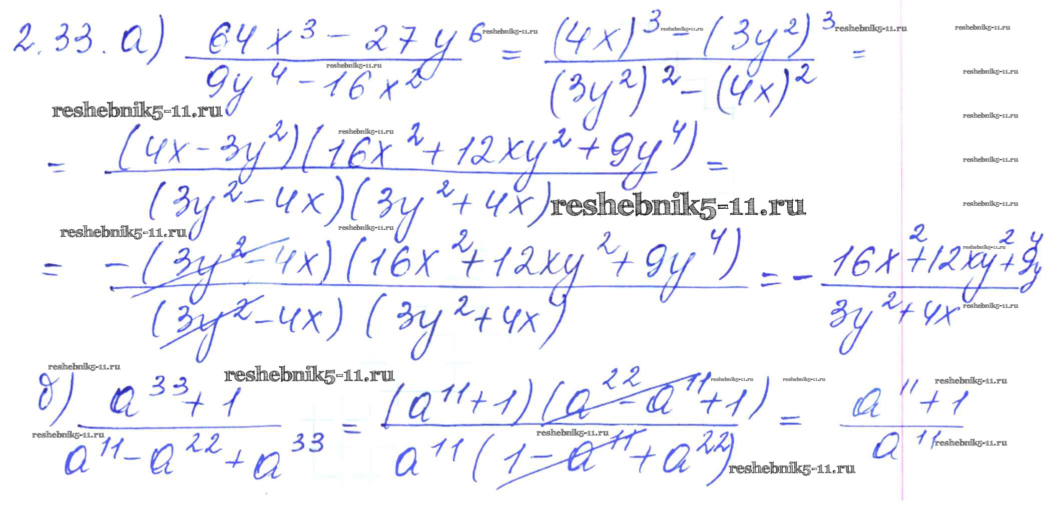 Готовая домашняя работа с ответами по Алгебре за 8, 9 класс Галицкий, Гольдман, Звавич Сборник задач Просвещение 2019 ФГОС - Параграф 2. Рациональные дроби 2.33