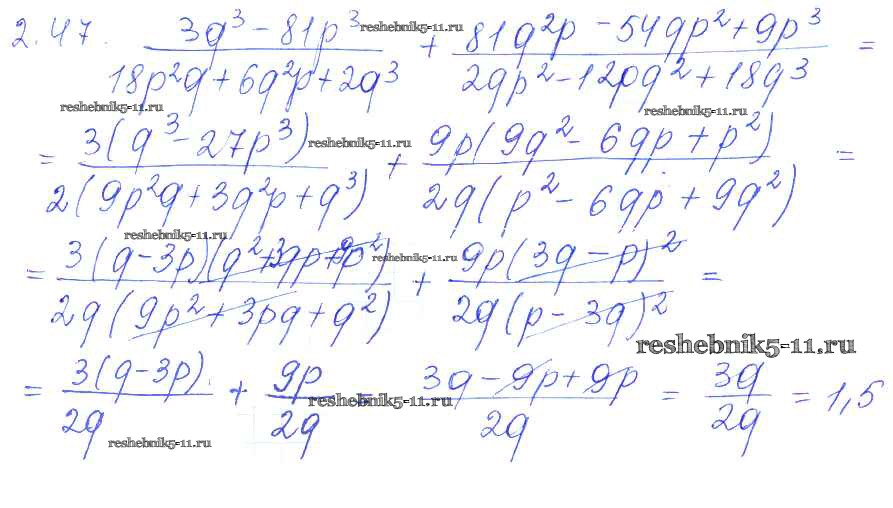 Готовая домашняя работа с ответами по Алгебре за 8, 9 класс Галицкий, Гольдман, Звавич Сборник задач Просвещение 2019 ФГОС - Параграф 2. Рациональные дроби 2.47