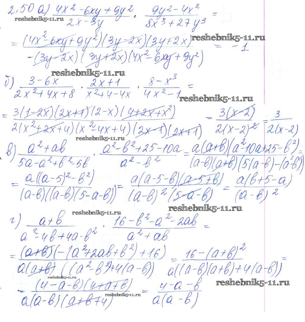 Готовая домашняя работа с ответами по Алгебре за 8, 9 класс Галицкий, Гольдман, Звавич Сборник задач Просвещение 2019 ФГОС - Параграф 2. Рациональные дроби 2.50