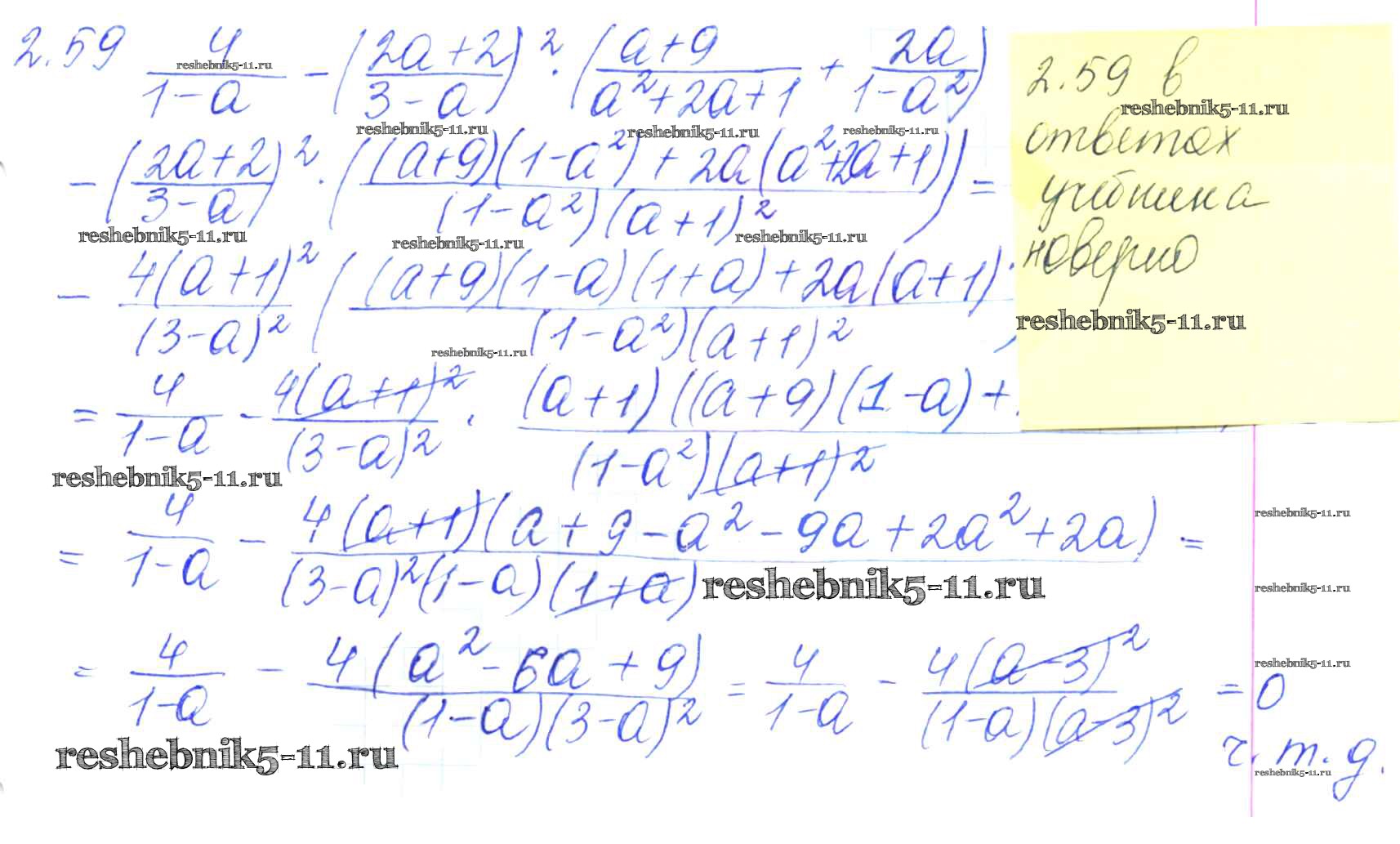 Готовая домашняя работа с ответами по Алгебре за 8, 9 класс Галицкий, Гольдман, Звавич Сборник задач Просвещение 2019 ФГОС - Параграф 2. Рациональные дроби 2.59