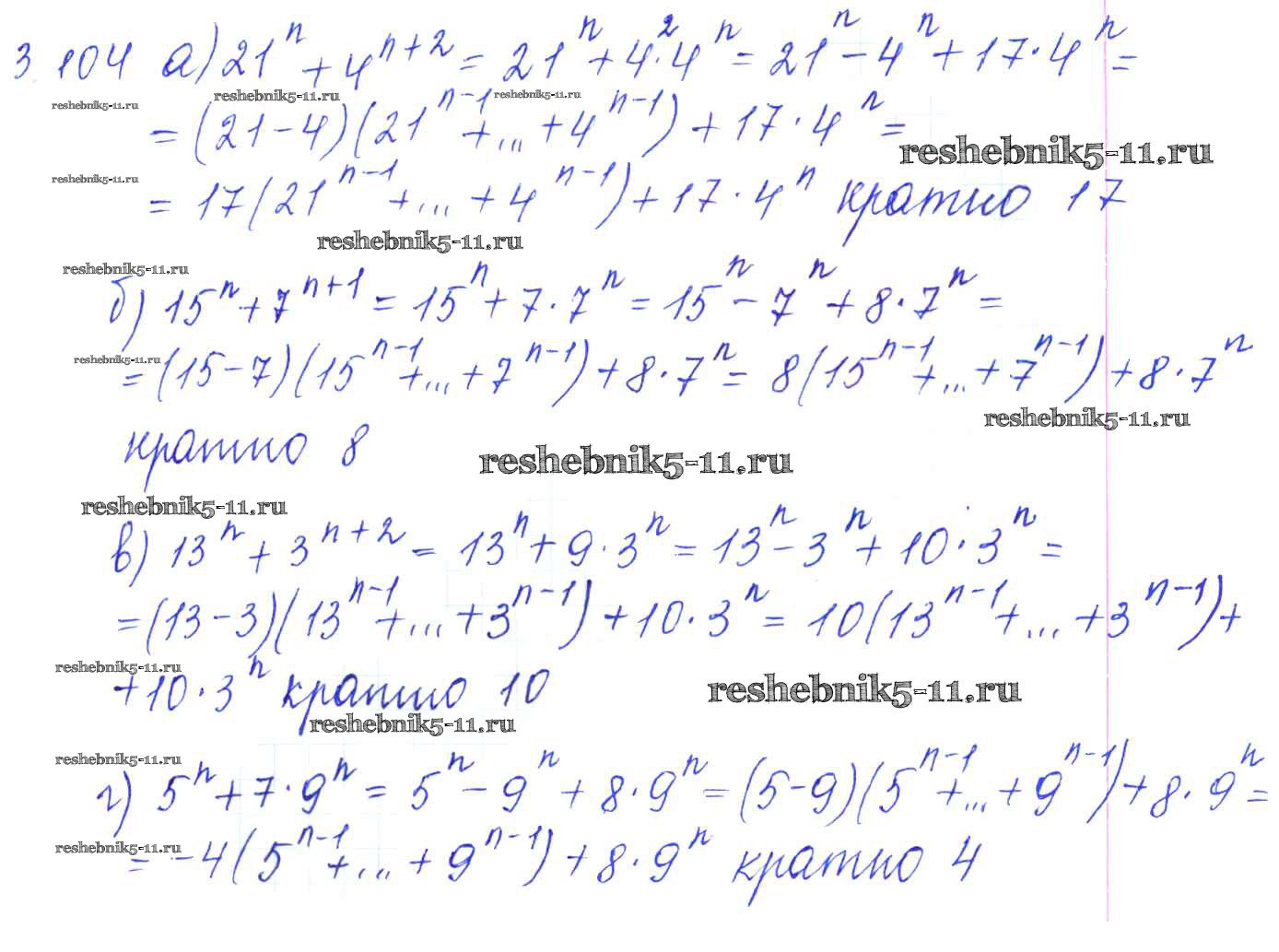 Готовая домашняя работа с ответами по Алгебре за 8, 9 класс Галицкий, Гольдман, Звавич Сборник задач Просвещение 2019 ФГОС - Параграф 3. Делимость целых чисел 3.104