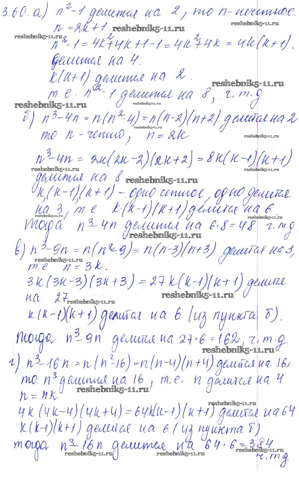 Готовая домашняя работа с ответами по Алгебре за 8, 9 класс Галицкий, Гольдман, Звавич Сборник задач Просвещение 2019 ФГОС - Параграф 3. Делимость целых чисел 3.60