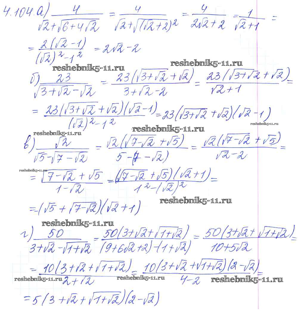 Готовая домашняя работа с ответами по Алгебре за 8, 9 класс Галицкий, Гольдман, Звавич Сборник задач Просвещение 2019 ФГОС - Параграф 4. Квадратные корни 4.104